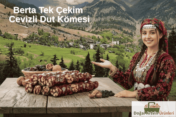 Kıymetli müşterilerimiz! Biz Doğal Artvin Ürünleri firması olarak bizzat Berta Köyü’nde üretim yapıyor ve Artvin’in cennet köşesi Berta Vadisi’nde yetişen asırlık dut ağaçlarının saf şırasından ürettiğimiz, Tek Çekim Cevizli Dut Kömesini hiçbir katkı maddesi eklemeden, gönül rahatlığıyla sofranıza sunuyoruz.